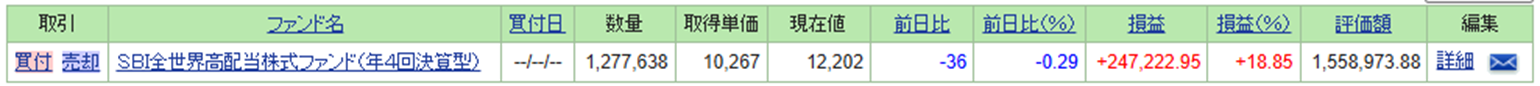 SBI全世界高配当株式ファンド(年4回決算型)