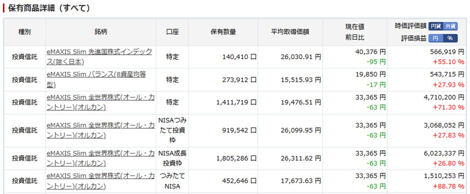 現在は新NISA分(30万/月)と特定口座(2.0万)、iDeCo(2.0万/月)を積み立てています。