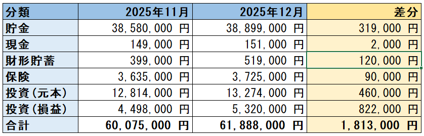 2025年最後の資産状況チェックです。