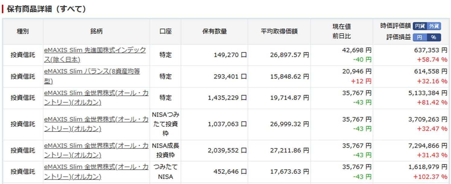 当記事では、投資信託の評価額も画像付きで掲載しています。