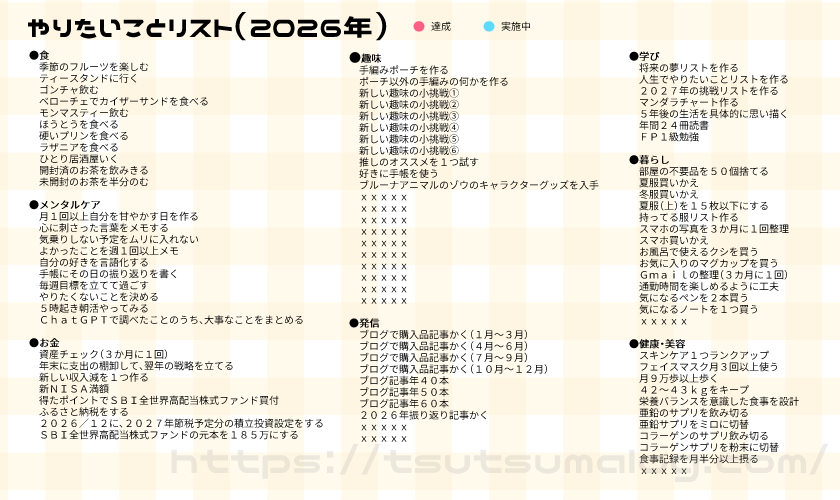 2025年のやりたいことリストはこちら。