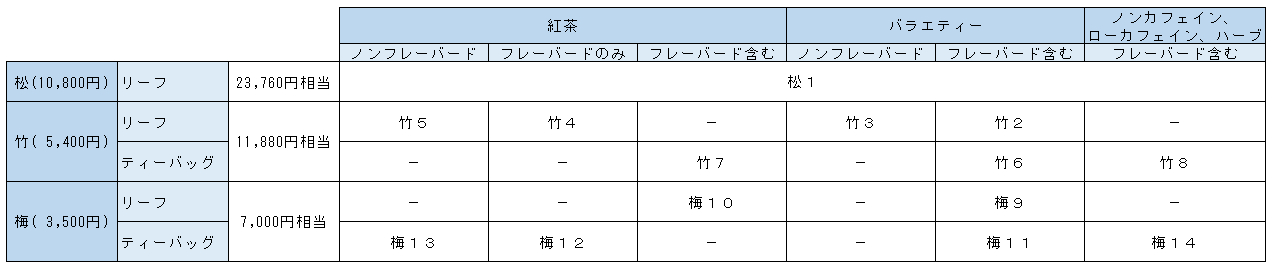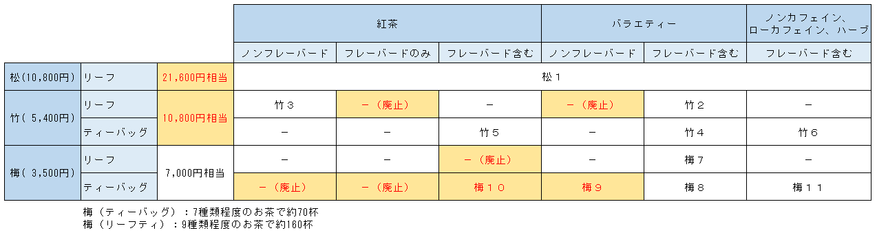 2026夏は、「松、竹、梅すべてについて、値段の2倍相当の茶葉が含まれる」変更されています。